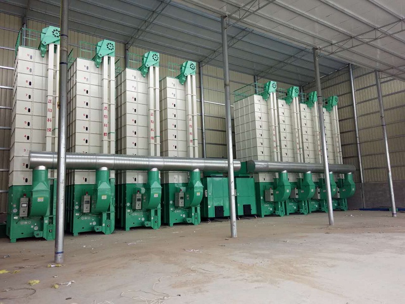 Cereal dryer set for 2 hot air stoves and 8 drying machines
