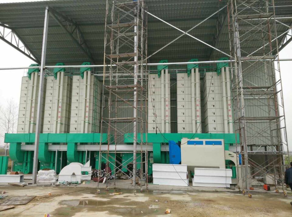 Grain dryer set for 2 hot-air stoves and 6 drying machines