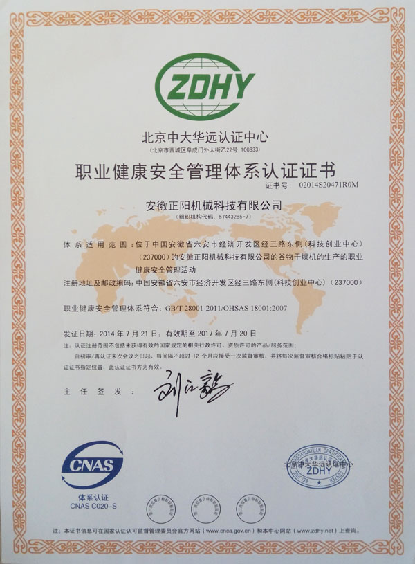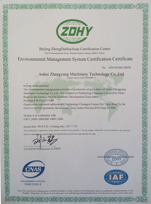 環(huán)境管理體系認證證書